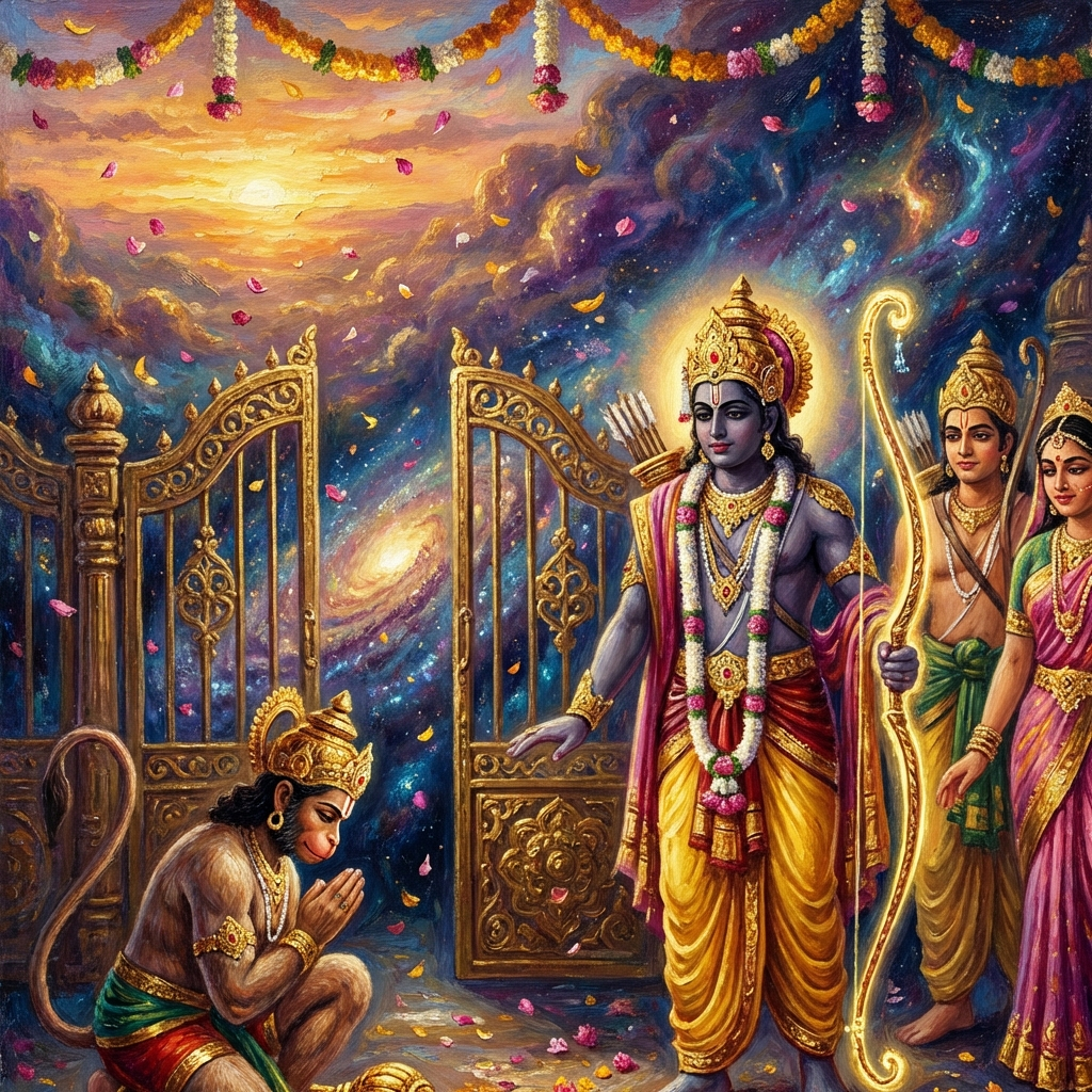 An exiled prince builds a bridge across the ocean, slays a demon-king who stole his wife, and returns to establish the golden age of just rule.
