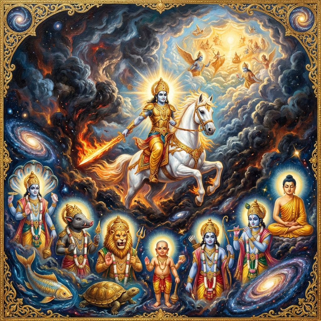 At the end of the darkest age, a rider on a white horse with a blazing sword will cleanse the earth and restart the golden cycle of time.